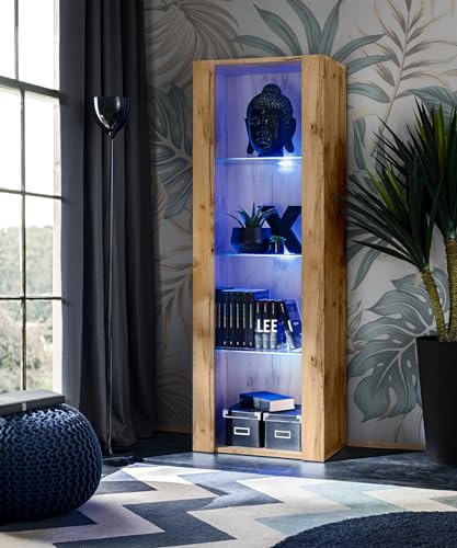 Vitrine Armoire Tivoli, 55cm x 159cm x 35cm, LED Bleue