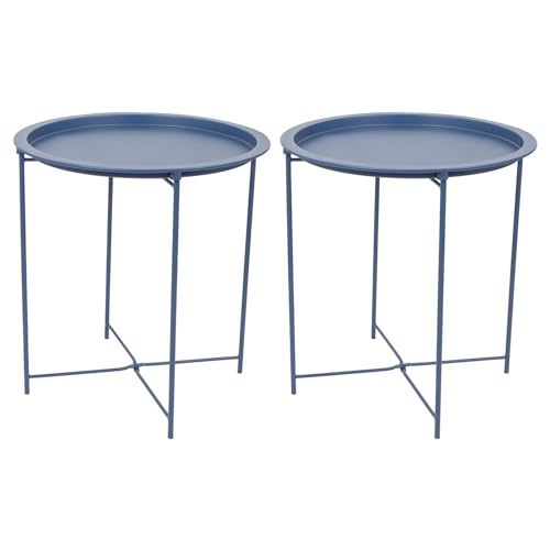 Harbour Housewares 2X Bleu Marine Mat Rond Tables à Plateaux...