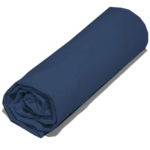 Drap housse uni 140x190 cm bonnet 30 cm SAPRI bleu indigo.