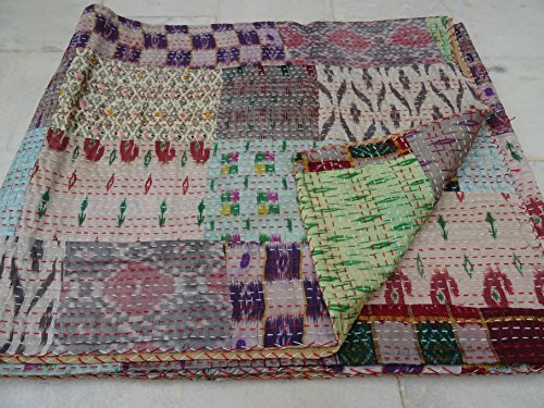 Sophia-Art Patola Couvre-lit en soie Kantha Couvre-lit patch...