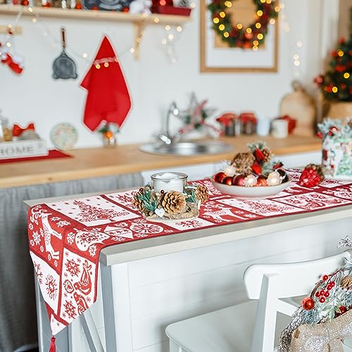 Chicamy Table Rouge 33x180cm Rayé Naturel Lavable Décoratif