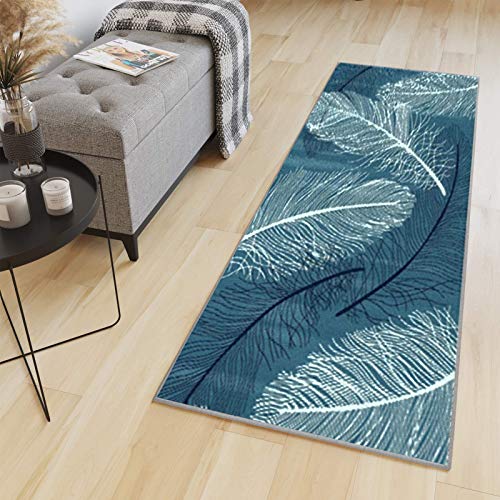 Tapis de couloir lavable bleu, antidérapant, 80 x 150 cm