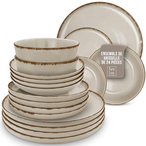 Ensemble Vaisselle Grès 24 pièces Rustique Service de Table...