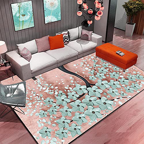 Rose Blue Motif Design Tapis Durable Machine Lavable Salon 1...