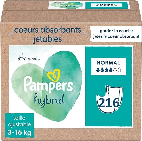 Pampers Harmonie Hybrid 216 Cœurs Protection Lavable 100% Ab...