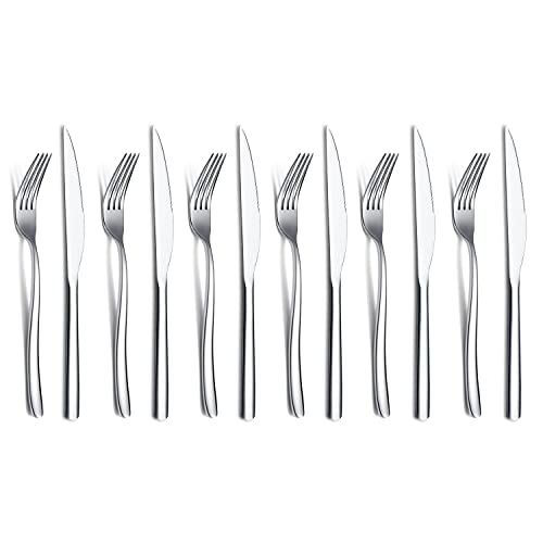 Ensemble Couteaux à Steak 12 Pièces, Fourchettes Polies, Lav...