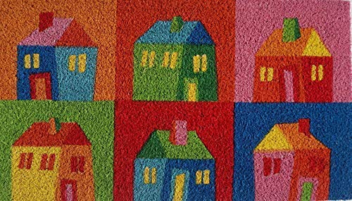 Paillasson coco PVC, motif maisons, 70 x 40 x 2 cm.
