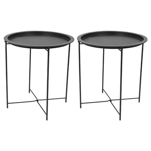 Harbour Housewares 2X Noir Mat Rond Tables à Plateaux en Aci...