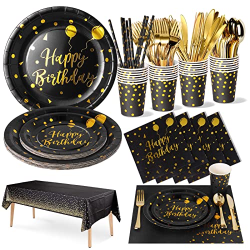 Nkaiso 161pcs Noir Or Anniversaire Party Vaisselle,Kit Vaiss...