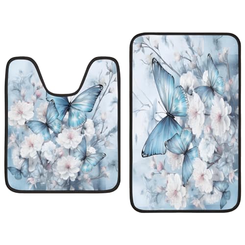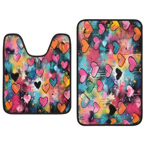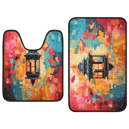 Pardick U-shaped 2-piece bath mats, abstract leaf pattern ba...