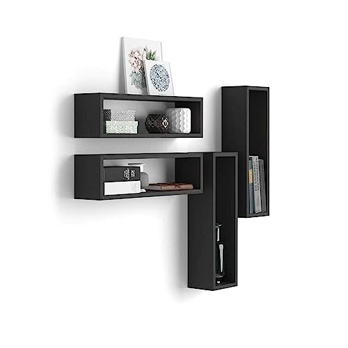 Mobili Fiver Set Cubes Murales Mélaminé Frêne Noir Étagères...