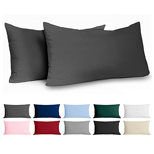 Taie Oreiller 50x80 Coton Renforcé Set de 2 Anthracite