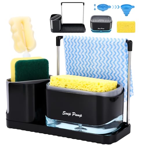 Distributeur liquide vaisselle noir 4 en 1, Savon Porte-épon...