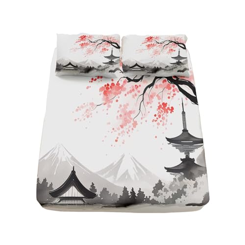 SOSICO Guerrier Draps 180x200cm Bambou Imprimé 4 Pièces