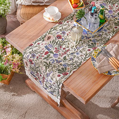 ARTABLE Chemin de table rectangulaire,Feuilles et fleurs ver...