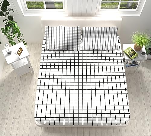 Drap Housse Noir Blanc Carreaux Microfibre Adulte Respirant...