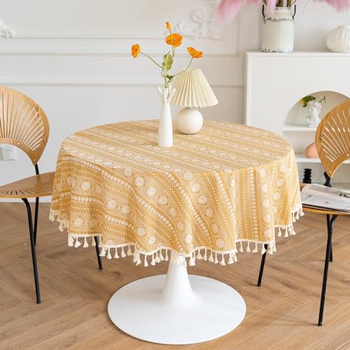 Nappe ronde dentelle fleurs mini table campagnes jaune