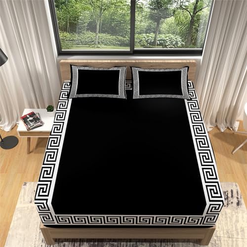 Noir Drap Housse 160x200 Dentelle GéOméTrique Protection de...