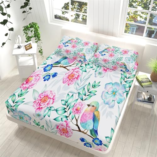 Enfants Adultes Drap Housse 160x200 Bonnet 30cm, Motif Fleur...