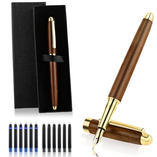 Ensemble de stylo-plume vintage en bois, 12 cartouches d'enc...