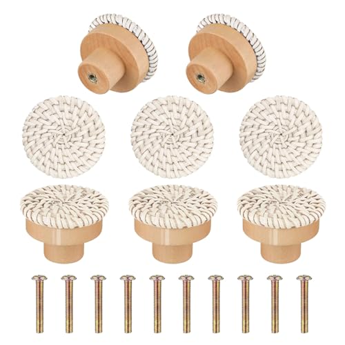 ✨【Matériau de haute qualité】: Boutons de meuble en rotin...