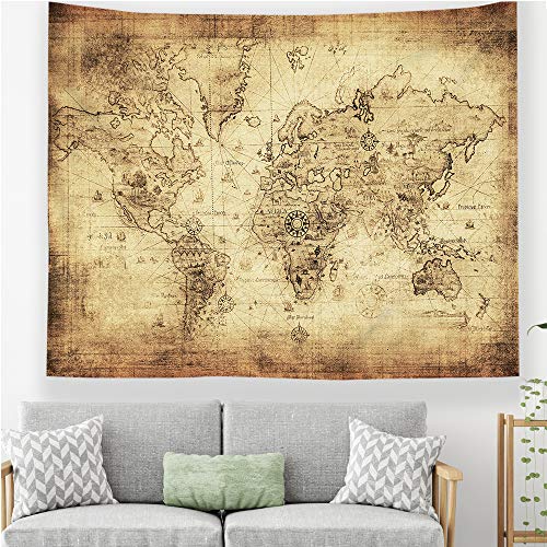 Odot Tapisserie Murale, Monde Carte Impression Tenture Mural...