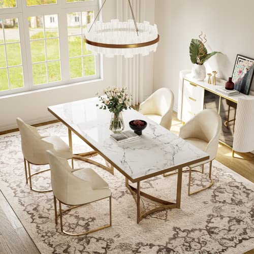 POVISON Table Salaire Marbre Faux Blanc 180cm 6-8 Personnes