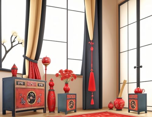 Buffet chinois avec 2 tables de chevet assorties avec des mo...