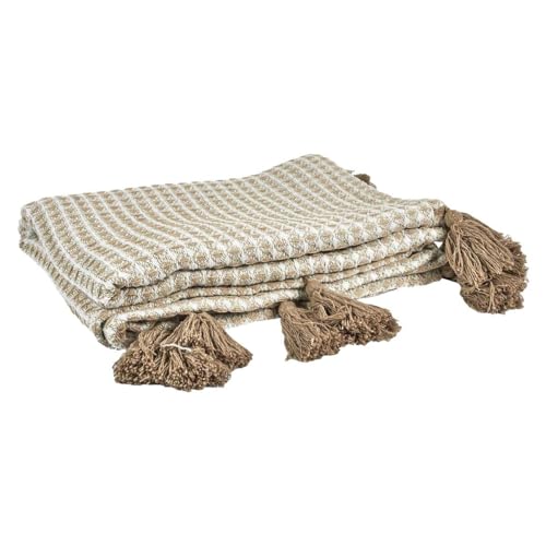 Plaid Motif Nid d''abeille Marron et Blanc 125x150cm avec Po...