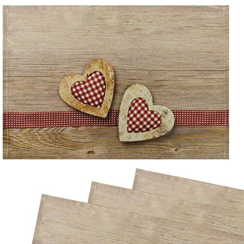 Superbes sets de table en textile tissé imprimé avec deux cœ...