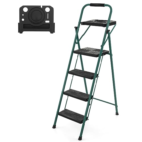 GYMAX Escabeau à 4 Marches, Échelle Pliable avec Plateau de...