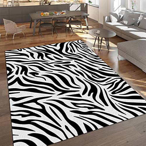 Zèbre Noir & Blanc, Tapis Décoratif Abstrait Motifs Irréguli...