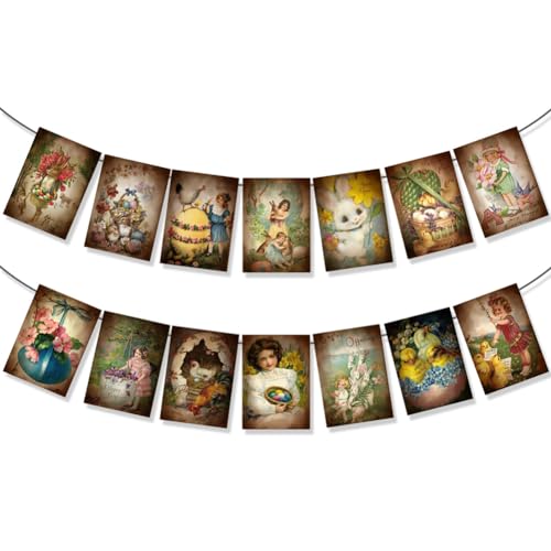 Lot de 2 bannières de Pâques vintage de style victorien avec...