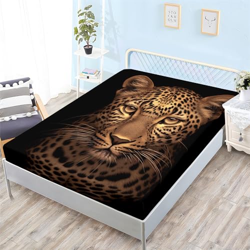 Drap Housse 180x200 cm Motif Guépard Microfibre doux et rési...