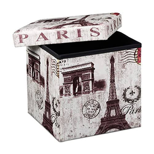 Pouf de rangement avec motifs Paris en similicuir – Le desig...