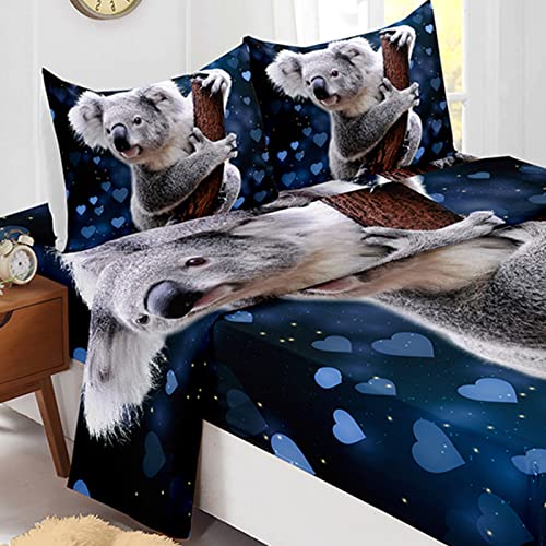 Parure drap plat koala housse microfibre, motif cœur 90x190c...