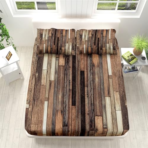 Rayures de Planches de Bois Vintage Drap Housse 90x190cm ave...