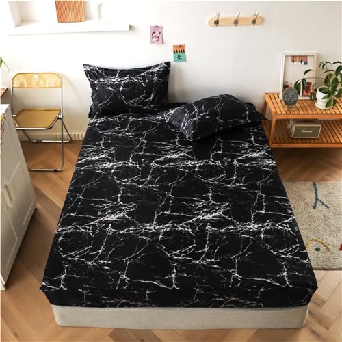 Drap Housse 160x200 cm Parure de Lit en Microfibre BrosséE D...