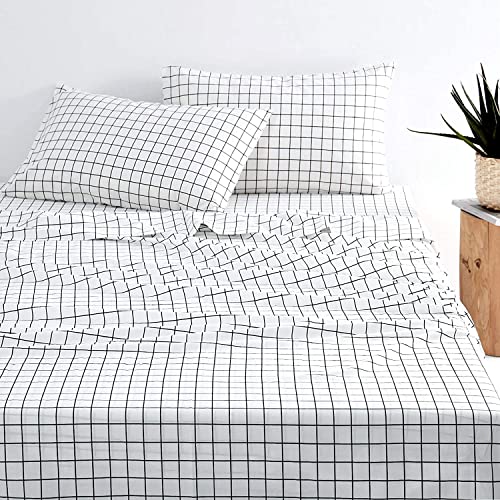 Drap Housse Noir Blanc Carreaux Microfibre Adulte Respirant...