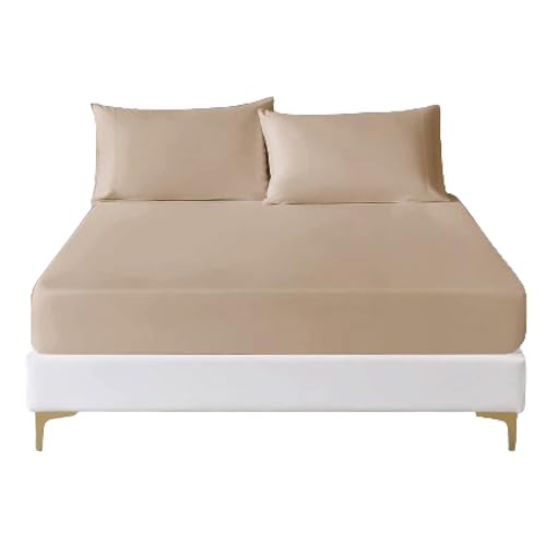 Menkala Satin Drap Housse 30cm 2 Personnes Or Beige Unie Mic...