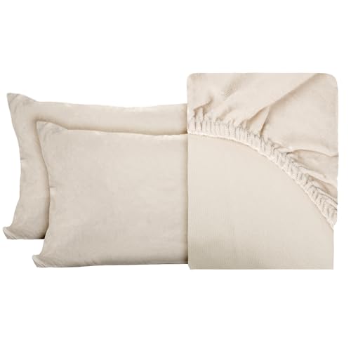 Drap-housse thermique velours, 3 pièces 135x200cm + oreiller...