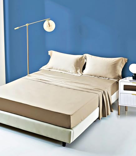 Funky Gadgets Drap-housse coton égyptien beige poches profon...