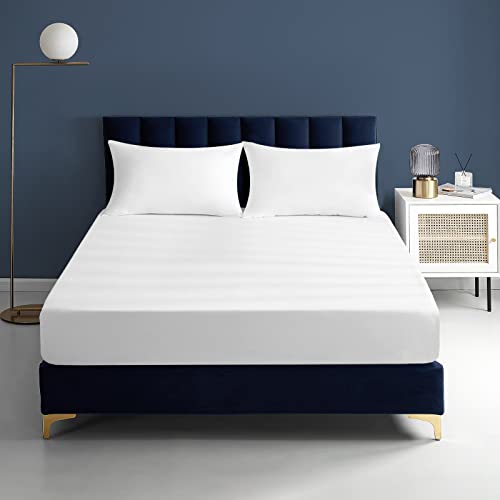 Luxe Soie Polyester Drap-Housse Blanc Queen Size