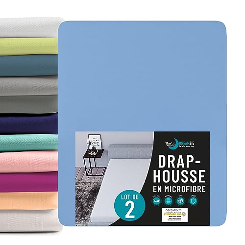 Dreamzie Draps Housses 80x200 Microfibre Oeko Tex Bleu Cérul...