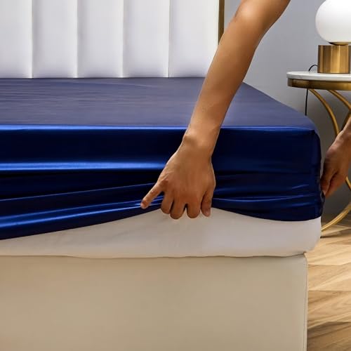 Drap Housse Satin 160x200cm Bleu