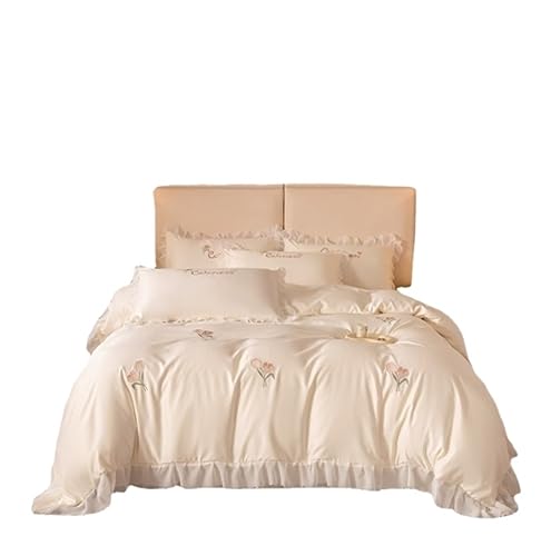 XTZYGLF Soie Draps Brodés Fleurs Lit 4 Pièces