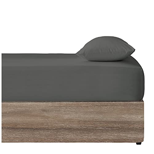 Drap Housse 160x200cm Satin Gris Coupe 30cm