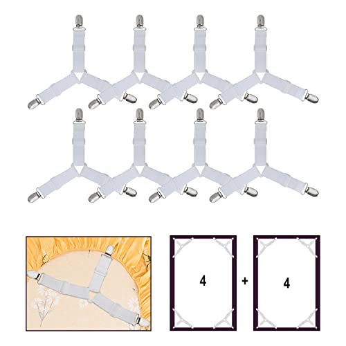 WADEO 8 Pièces Drap de Lit Attaches, Réglable élastiques Tri...