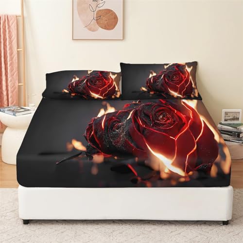 Saint-Valentin Drap Housse 90x190 cm, Poche 30cm, Flamme Ros...