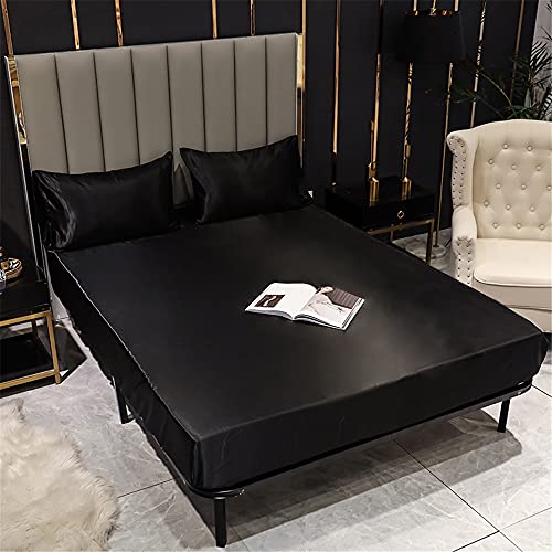 Drap Housse Satin Anti-Rides 2 Personne Luxe Noir